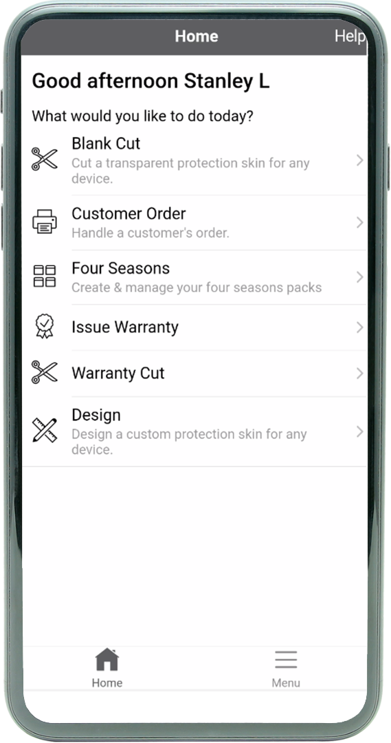 Users should be able to select their device model from a list to ensure accurate screen protector cutting.